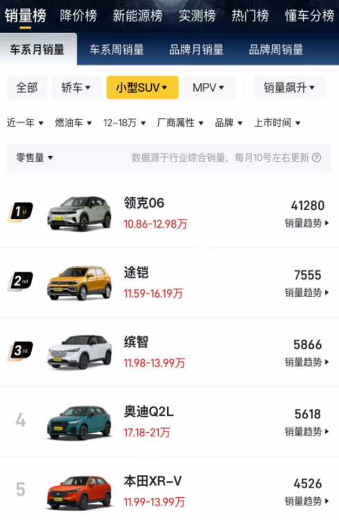 作为领克品牌年轻化、全球化战略的重要车型,领克06自面世以来,便以独特的潮流设计、前沿科技配置及卓越品质,在全球汽车市场中占据了一席之地。尤其是在国内市场,领克06凭借其出色的产品力,成功夺得10万级小型SUV细分市场销量冠军,成为追求精致出行年轻人的首选。这一成绩的取得,不仅彰显了领克06的强大市场竞争力,也体现了其精准的市场定位和用户需求的深刻理解。