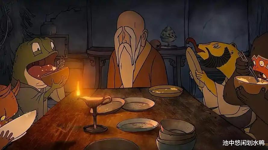 另外老和尚给人的感觉是有一点高深莫测的,有没有发现老和尚所在的寺庙和孙悟空以前所变化的寺庙很是相似,那撩眉毛的动作也给人一种有点“顽皮”的感觉。
