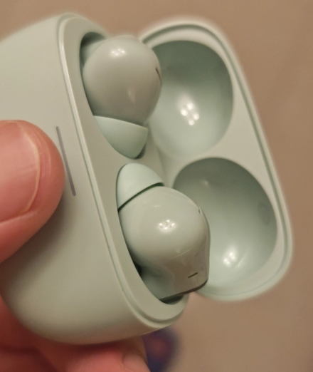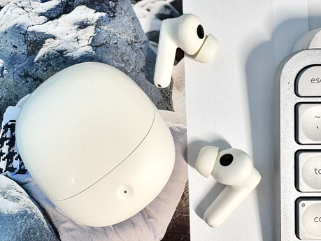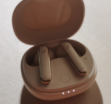 佩戴体验:单耳重量轻盈如一颗蓝莓,采用更薄更软的双层耳帽,触感柔软亲肤,佩戴舒适稳固,配备 5 种尺寸耳帽,适配不同耳型,久戴无明显涨耳感,小巧的充电仓,不管是外出还是手上拿着都是很轻松的