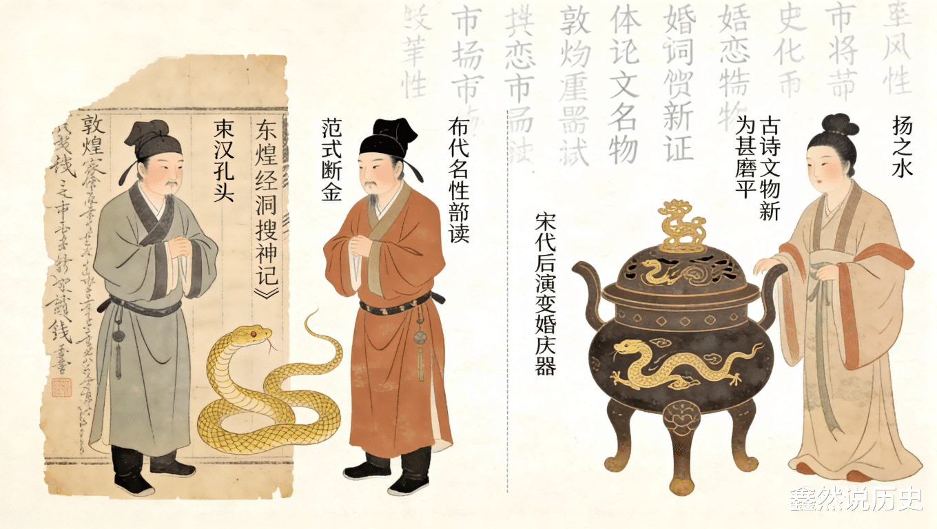 跨代误读逻辑:为何“挚友故事”会被改写成“夫妻范本”?考古学家扬之水在《古诗文名物新证》中考证:宋代后“断金故事”与管鲍分金、管宁割席等典故混淆,加之婚恋市场对“同心”主题器物的需求激增,工匠刻意模糊人物性别特征(弱化男性幞头、加宽衣袖),并逐步简化蛇形图案(部分文物直接磨平蛇纹),最终让“断金之交”彻底沦为婚庆贺词。