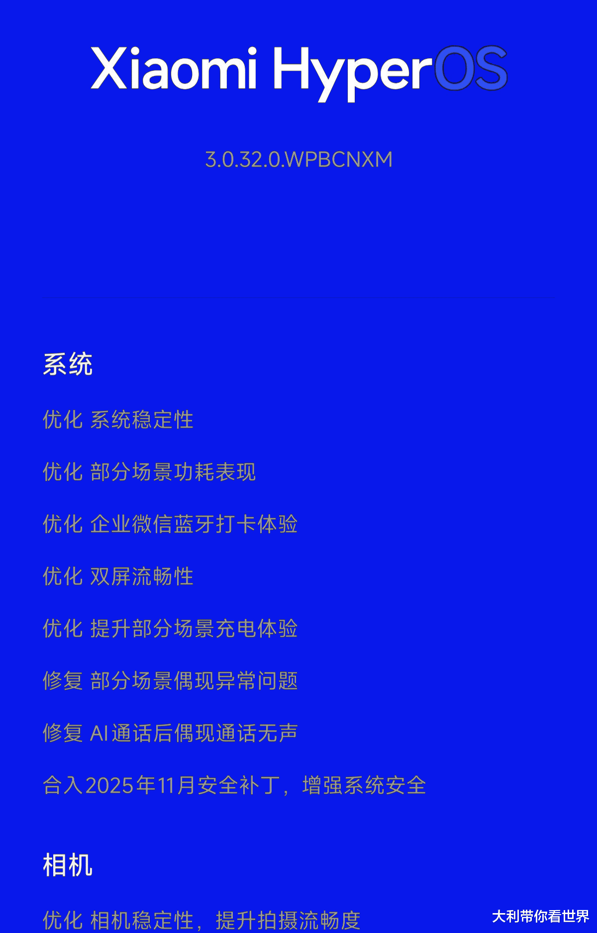 首先,不能不说的小米17系列的最新更新版本澎湃OS3.0.32.0,这一回的更新包大小是1.1GB,里头包含的东西还挺丰富的。