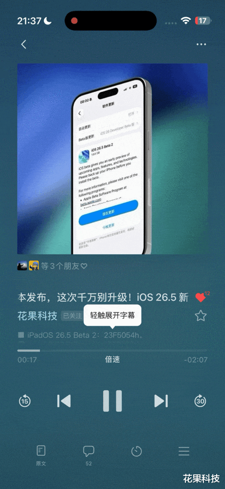 听全文的音频播放界面现在支持滚动字幕显示,点击即可查看文章滚动字幕,还可以点击标题部分跳转原文。