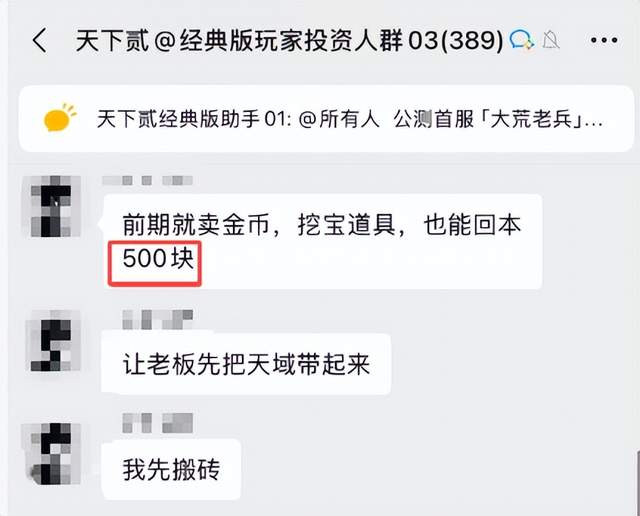 再加上慢节奏设计减负玩家肝度的同时,也保障了装备价值,而开服初期大家都在紧追进度,大佬们更是想快人一等抢占排行榜,对物资的获取也是非常舍得下血本的!就拿现在的搬砖首选,只能通过日常声望才能兑换的五行盘来说,每周单号可换25个盘子,现在单价5块,随随便便就是百元入手,若是多开再加上其他收益,钱包妥妥鼓鼓的。