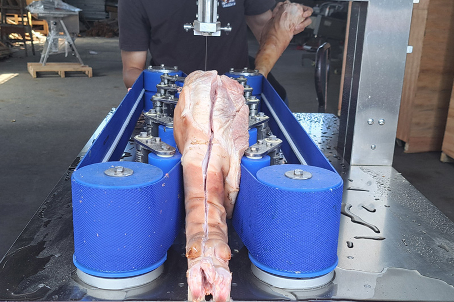 在餐饮行业,处理猪脚、猪肘这类食材总是让人头疼 —— 新鲜的滑手难固定,冷冻的硬得像块铁,人工切半不仅费力气,还容易切歪、伤手,效率更是低到离谱。但今天要给大家推荐的这款猪脚切边机,直接把食材处理效率拉满,堪称后厨 “效率神器”!