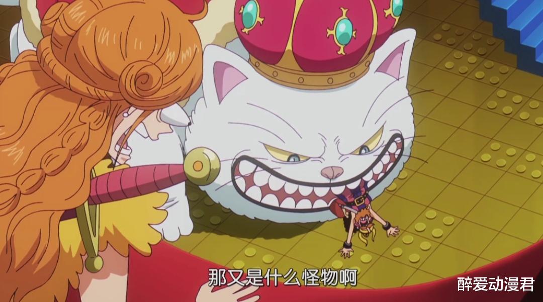 见到这一幕的娜美自然是吓得不轻了,之后两人更是被巨猫带着冲下了城堡。等到娜美醒来,面前就出现了一只巨大的狮子,娜美都快崩溃了,怎么到哪都是怪物啊!