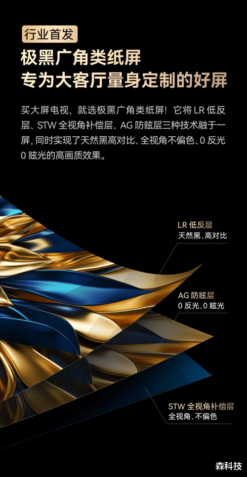 创维“黑骑士”A5F Pro改写了技术历史,实现“全场景画质无短板”,是比OLED电视效果更好的Mini LED电视:配备了创维联合BOE共同研发的极黑广角类纸屏,该屏首次将LR低反层、STW全视角补偿层、AG防眩层等三大屏体技术融于一体,实现天然黑、高对比、全视角不偏色、0反光0眩光。得益于30多年技术沉淀,“黑骑士”A5F Pro搭载了创维独创的新一代全链路光晕控制技术,打造出最强控光系统,实现Mini LED光晕抑制效果的指数级提升,画质更精细、更真实。