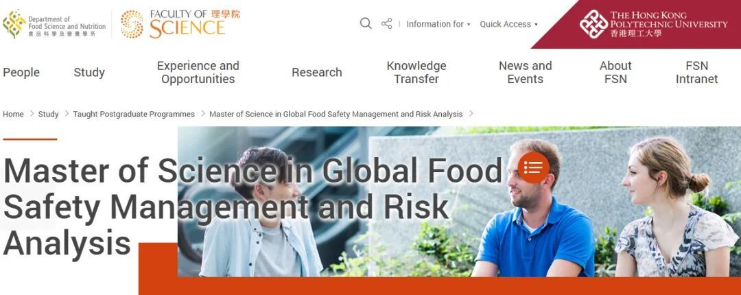 环球食品安全管理及风险分析理学硕士MSc Global Food Safety Management and Risk Analysis