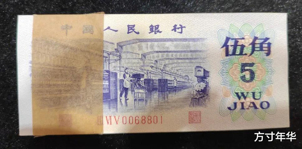 前边说的这张5角盒子币就是第三套人民币中的纺织5角,因为正面图案是纺织工人,所以俗称为纺织5角。是1974年1月5日发行的,距离现在也有50多年时间了,存世量要比四版币的少很多,所以说价格比四版币的5角纸币强很多。