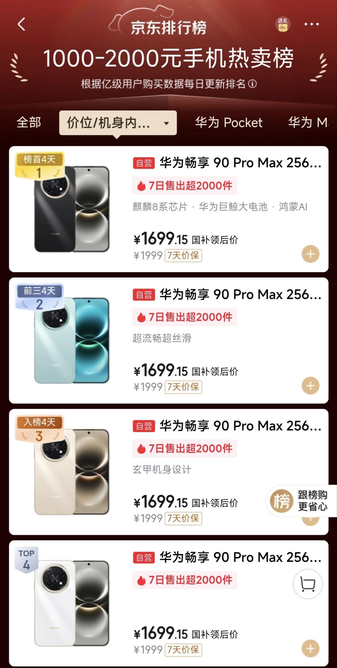 价格上,华为畅享 90系列展现了极致的性价比。国补后,Pro Max版本仅需1445元起,Plus版本仅需1275元起。加之2026年5月5日前入手的“畅享无忧大礼包”,涵盖屏幕、电池等多方位保障权益,这款机型无疑是当下千元机市场的“闭眼入”首选。