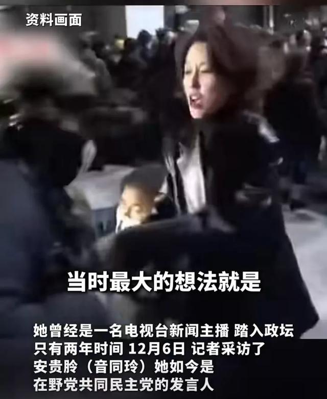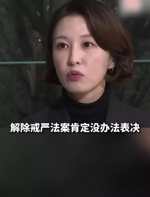 她曾经是一名电视台新闻主播踏入政坛只有两年时间12月6日记者采访了安贵朎(音同玲)她如今是在野党共同民主党的发言人!解除戒严法案肯定没办法表决!