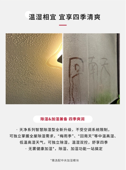 此外,日立中央空调全屋全感2.0还配备除湿新风换气机,当检测到室内二氧化碳浓度升高时,自动引入澎湃的清净新风,保持空气清新流通。这对于秋季常关门窗的家庭环境来说尤为重要。