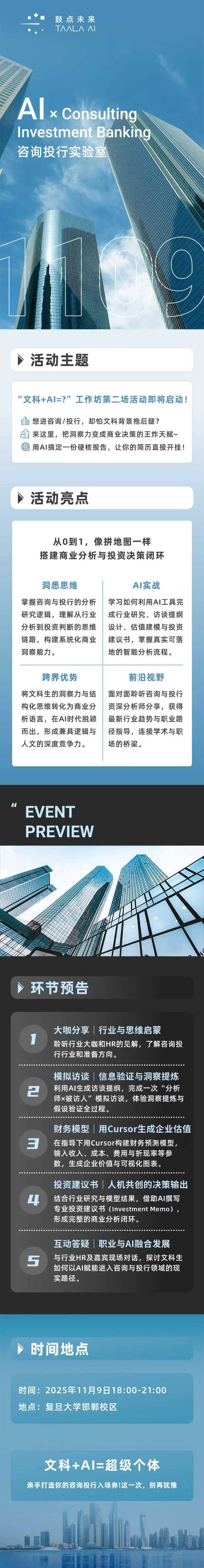 “文科+AI=?”工作坊主题之咨询投行实验室即将开启!