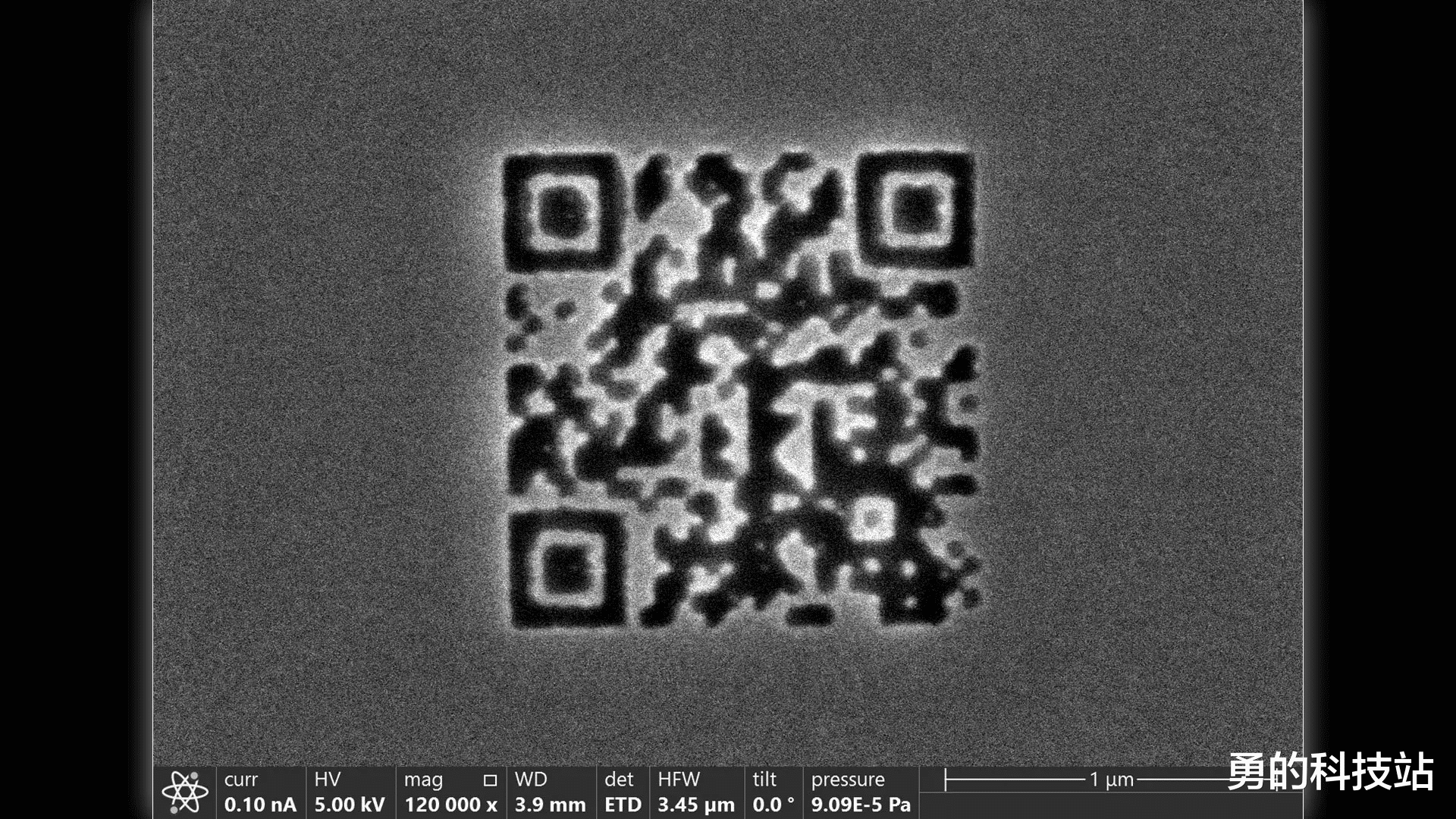 世界上最小的二维码只有电子显微镜才能看到。图片来源:维也纳理工大学