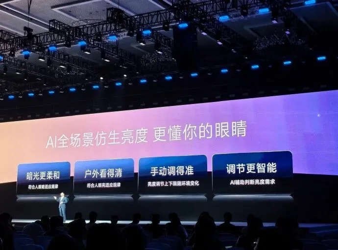 新加的 AI 全场景仿生亮度功能,让屏幕在不同的光线下都能保持舒服。晕动视觉辅助功能通过屏幕上的小圆点,能有效缓解晕车,据说缓解率高达 87%。