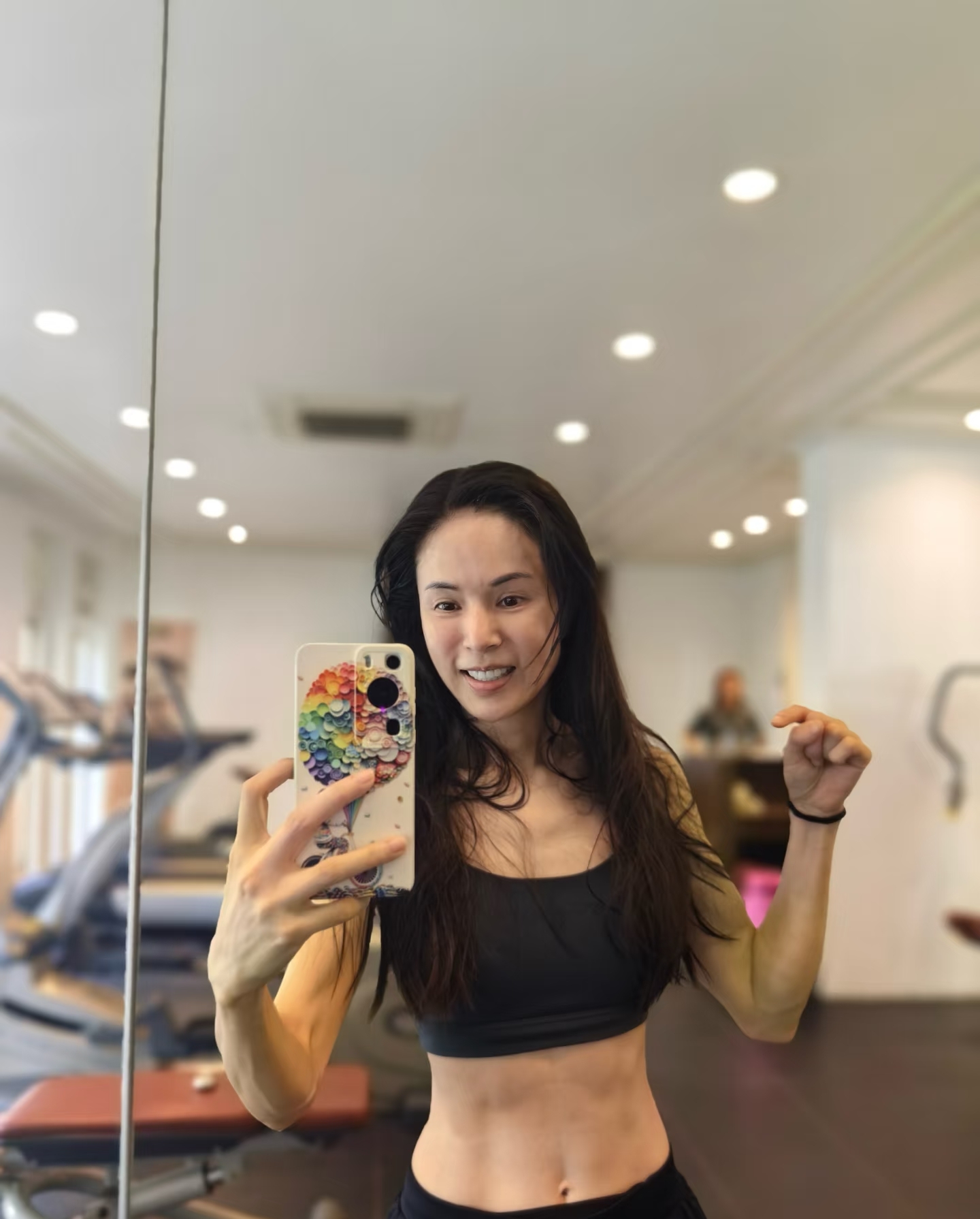 李若彤真的坚持锻炼,这也是港星里面非常普遍的现象,她们真的自律到让人怀疑。李若彤健身是实实在在的,可不是为了拍照发朋友圈的,看她脸上的汗水和对镜自拍的微笑程度,说明她也对自己的坚持表示很满意。