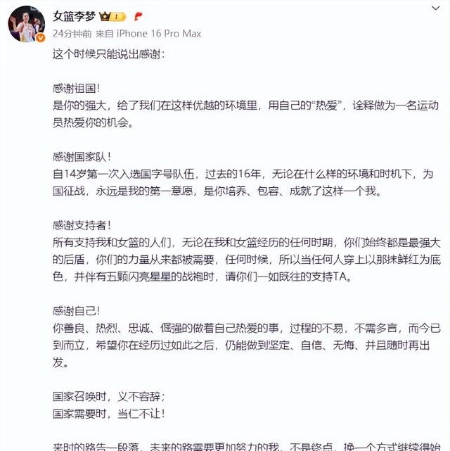 落选女篮国家队?李梦第1时间回应宫鲁鸣:连用4感谢疑似谢幕告别