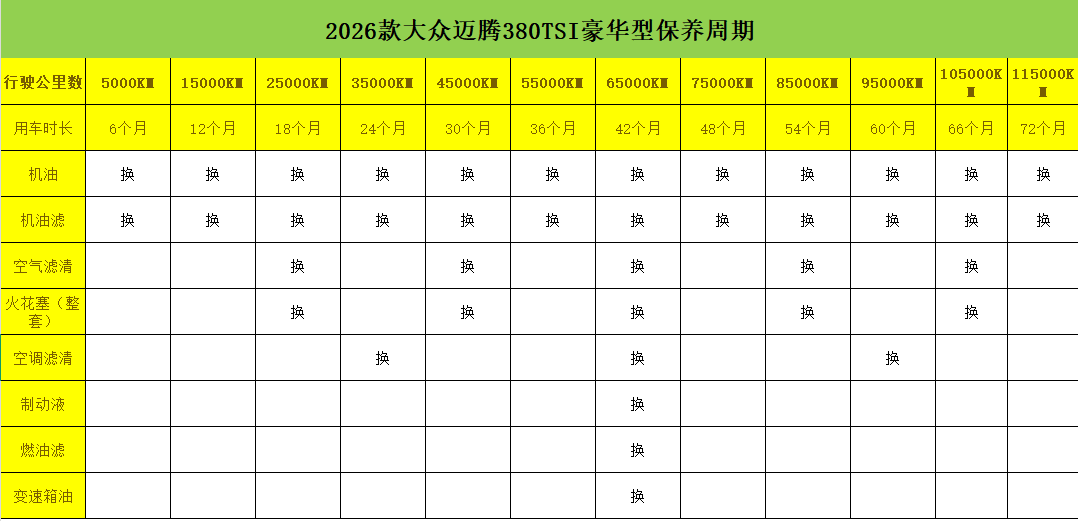 根据官方给出的保养手册来看,2026款迈腾380TSI豪华型的首保为5000公里,后续每10000公里保养一次。其中虽然有时候允许保养周期有一定浮动,但超出范围过长可能影响相关部件质保,所以在质保期期间,更建议用户按时保养,考虑到经济性常规保养可选择非4S店保养,但关键系统保养更建议选择4S店,如果出保之后可以考虑靠谱或连锁的非4S店保养,但复杂项目(如变速箱大修)仍回4S店,保证质量。