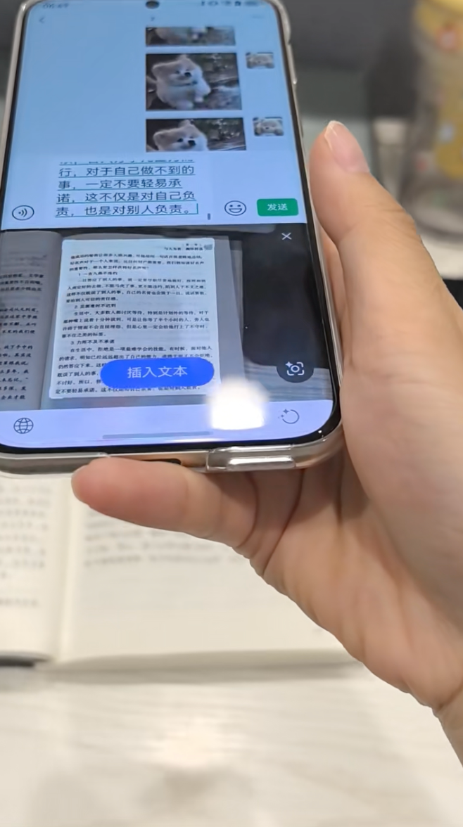 还有写东西这块,提升也挺大的。像写朋友圈、宣传稿,以前经常想不出怎么表达,憋半天都没写出来。现在用小艺输入法里的小艺帮写,只要输个关键词,它就能生成几段思路清晰的参考文案,语气也挺自然的,稍微改改就能直接用,不用一个字一个字慢慢琢磨。拍照输入对我们学生也很实用,像考试安排、图书馆开放时间、门口张贴的临时通知,拍一张图,识别文字后直接能填进输入框,复制转发非常方便,完全不用一字一字敲,节省了不少时间。