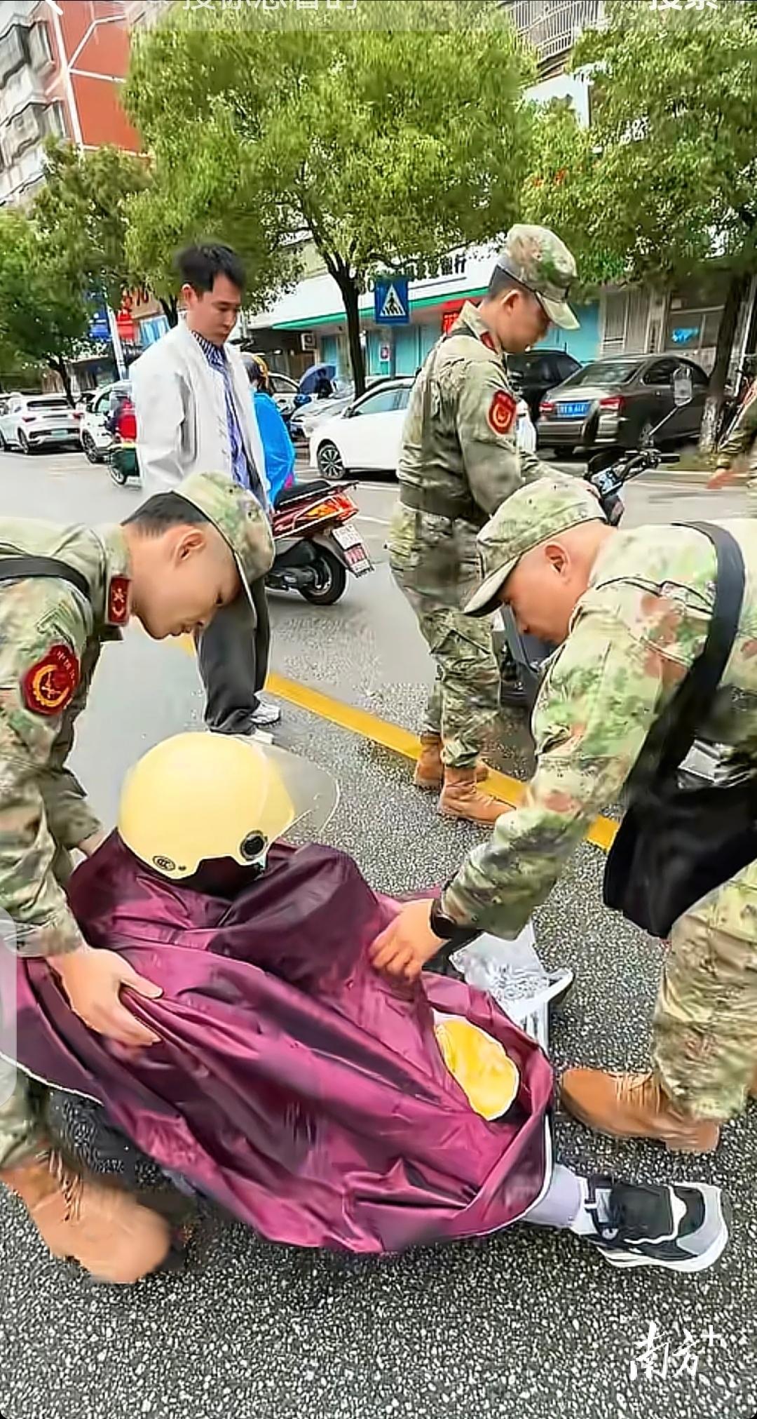 “快停车救人!”带队民兵一声呼喊,五人立即冲向现场。风雨中,他们分工明确、默契配合:两人迅速在来车方向设置警示,引导车辆避让;一人轻轻移开压在老人腿上的电动车;另外两人蹲下身来,一边查看伤情,一边柔声安抚。见老人意识清醒但腿部擦伤、行动困难,他们小心搀扶,将他转移到安全区域。“雨越下越大,老人浑身湿透,不停发抖,我们只想尽快帮他脱离危险。”参与救援的民兵回忆道。在联系家属的同时,他们始终守护在老人身旁,直至家属赶到确认平安,才默默转身离开。这温情一幕,让现场市民感动不已,纷纷称赞他们是“穿迷彩服的守护者”。这次救援中,海丰民兵不仅展现了过硬的应急素养,更用实际行动践行了“为人民服务”的宗旨,向社会传递着温暖与力量。雨幕中的守护虽短,却是民兵们“退伍不褪色、为民显担当”的生动写照。南方+记者 陈欣欣通讯员 陈华【作者】 陈欣欣【来源】 南方报业传媒集团南方+客户端 老人雨天摔倒海丰民兵暖心救助
