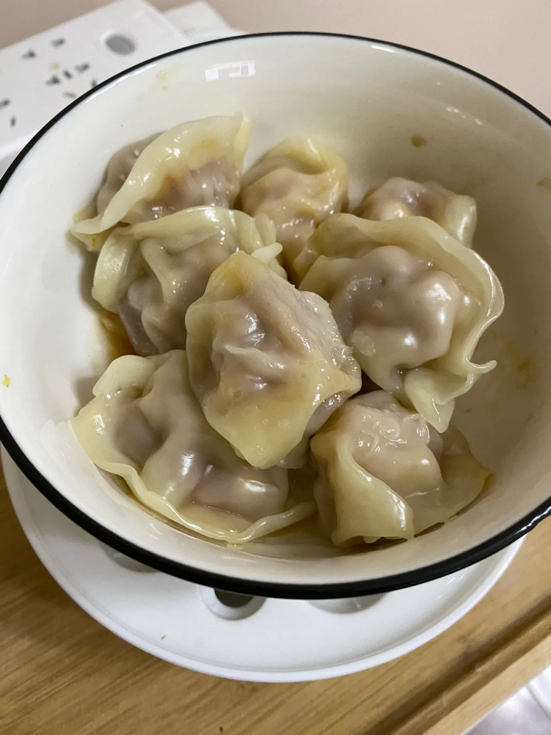 饺子蒸好之后取出来,然后再调一个料汁,美美的一人早餐就做好了。