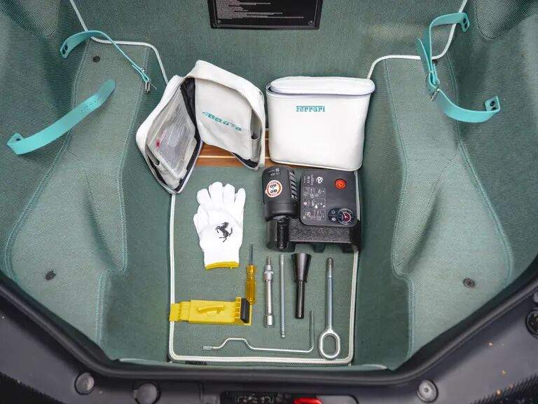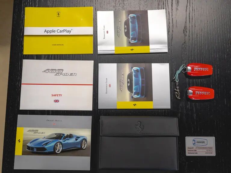 车内专属的Tailor Made定制铭牌,更是印证了这台车独一无二的身份,它并非量产版特别系列,而是车主深度参与、法拉利专属部门一对一打造的孤品规格,截至目录编制时,车辆表显里程仅9925公里,属于极低里程的准新车状态,全程保养记录完整,随车附带维修发票、车主手册、保养手册以及原厂座椅套、方向盘罩等全套附件,车况与品相均达到收藏级标准。