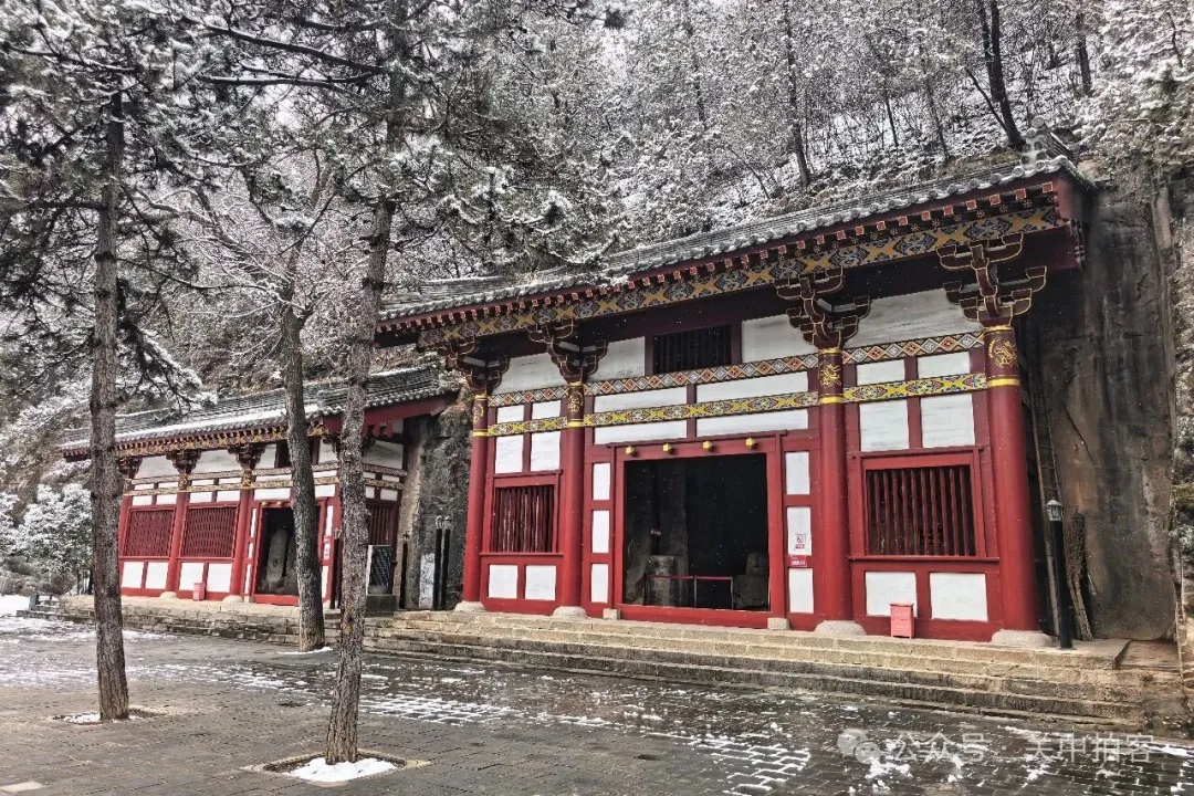 2026年2月15日傍晚,赶着天黑之前,我来到慈善寺。2011年4月4日清晨,我第一次到达这里,留下非常好的印象,山清水秀,世外净土。转眼之间,十五年过去,此地变化不大。一场瑞雪,银装素裹,石窟前方修葺一新的殿堂显得更加超凡脱俗。