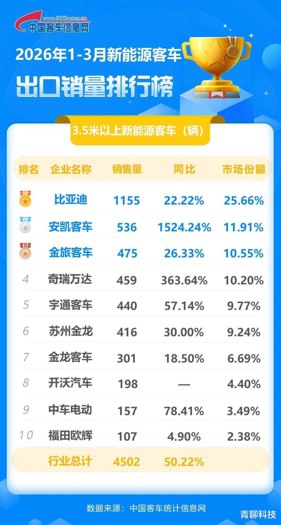 有人说,这是运气。但看看数据:一季度新能源客车出口总量中,比亚迪一家就占了超过四分之一。第二名的数字是多少?甚至没能突破1000辆的门槛。差距不是一星半点。