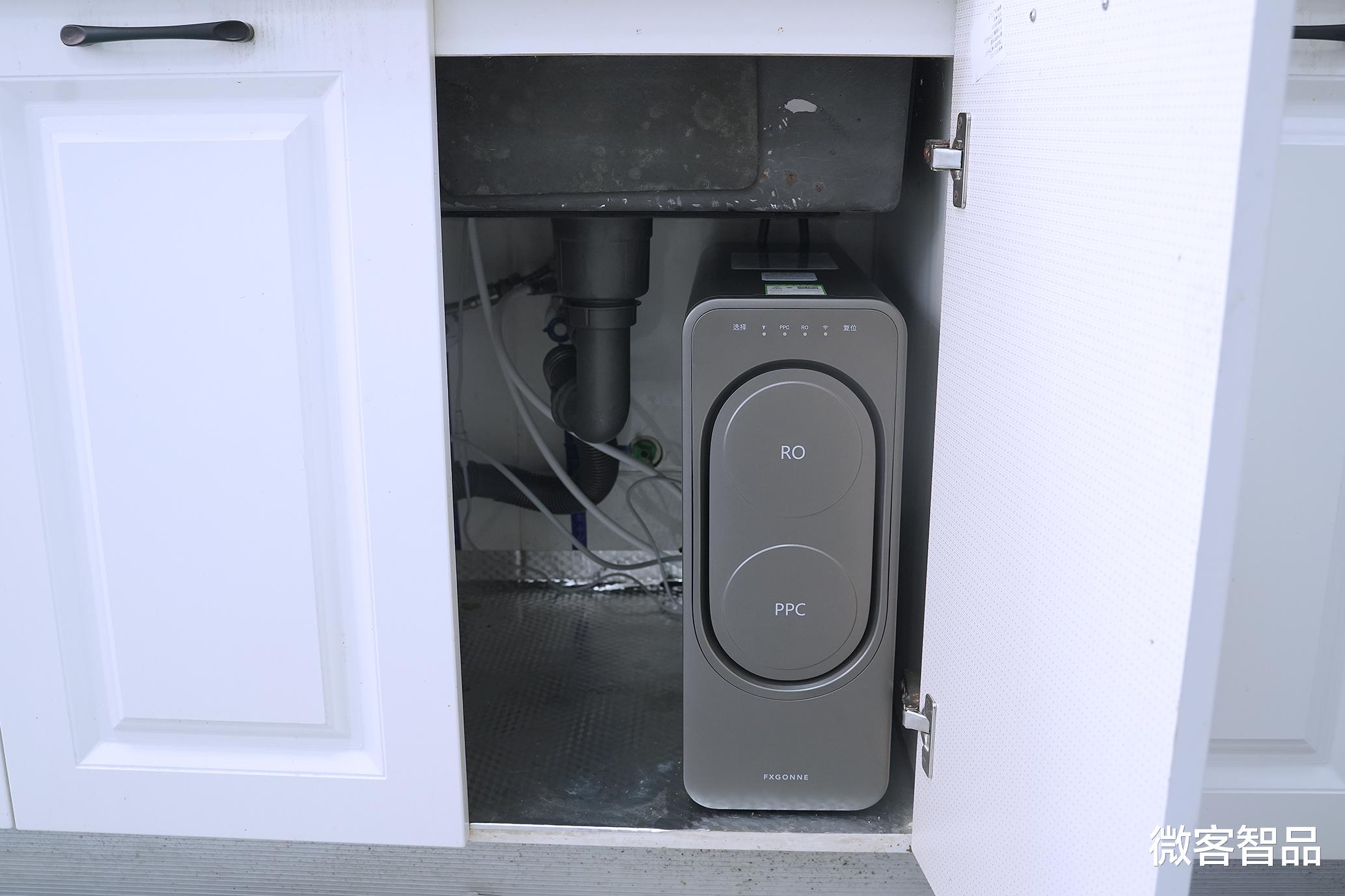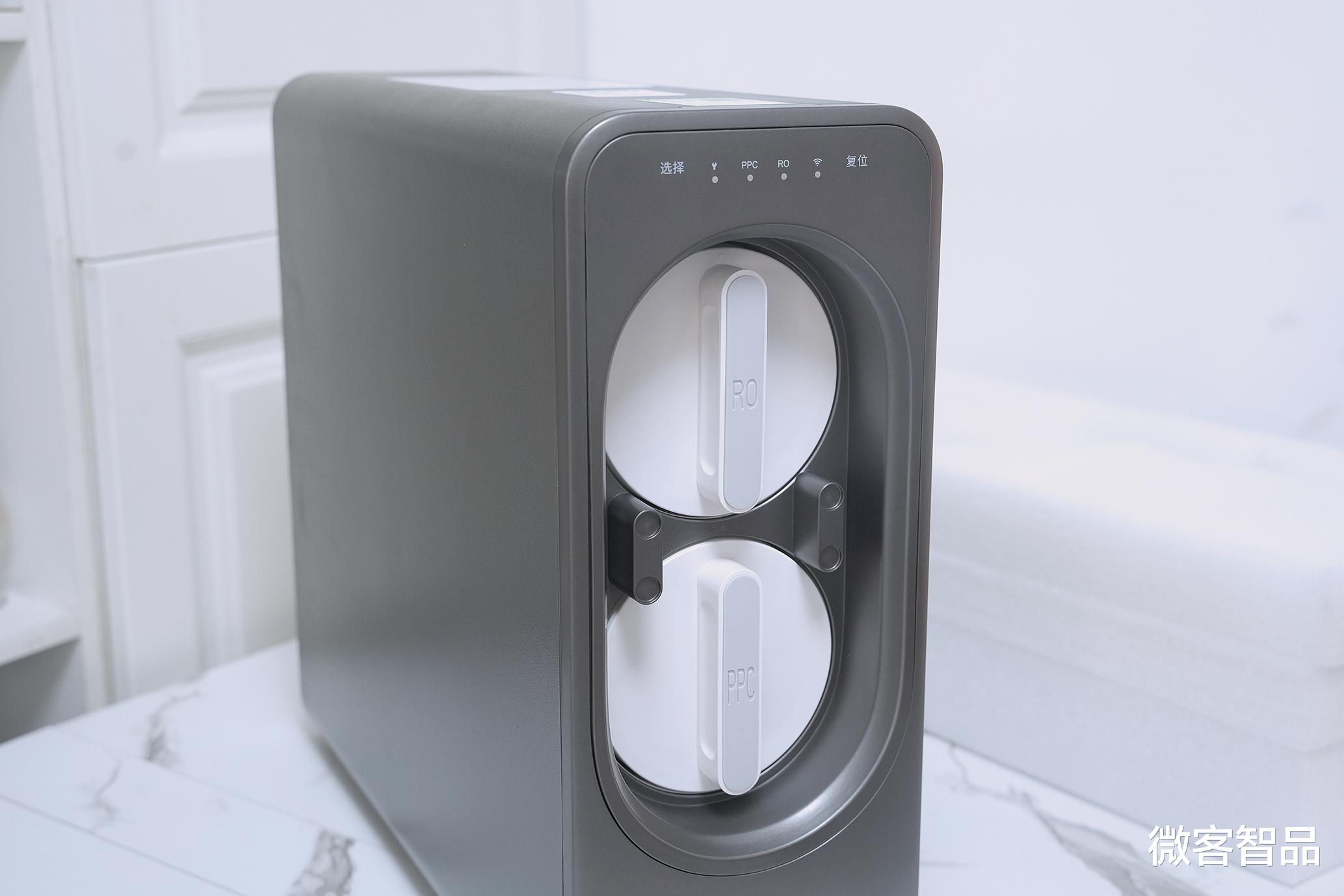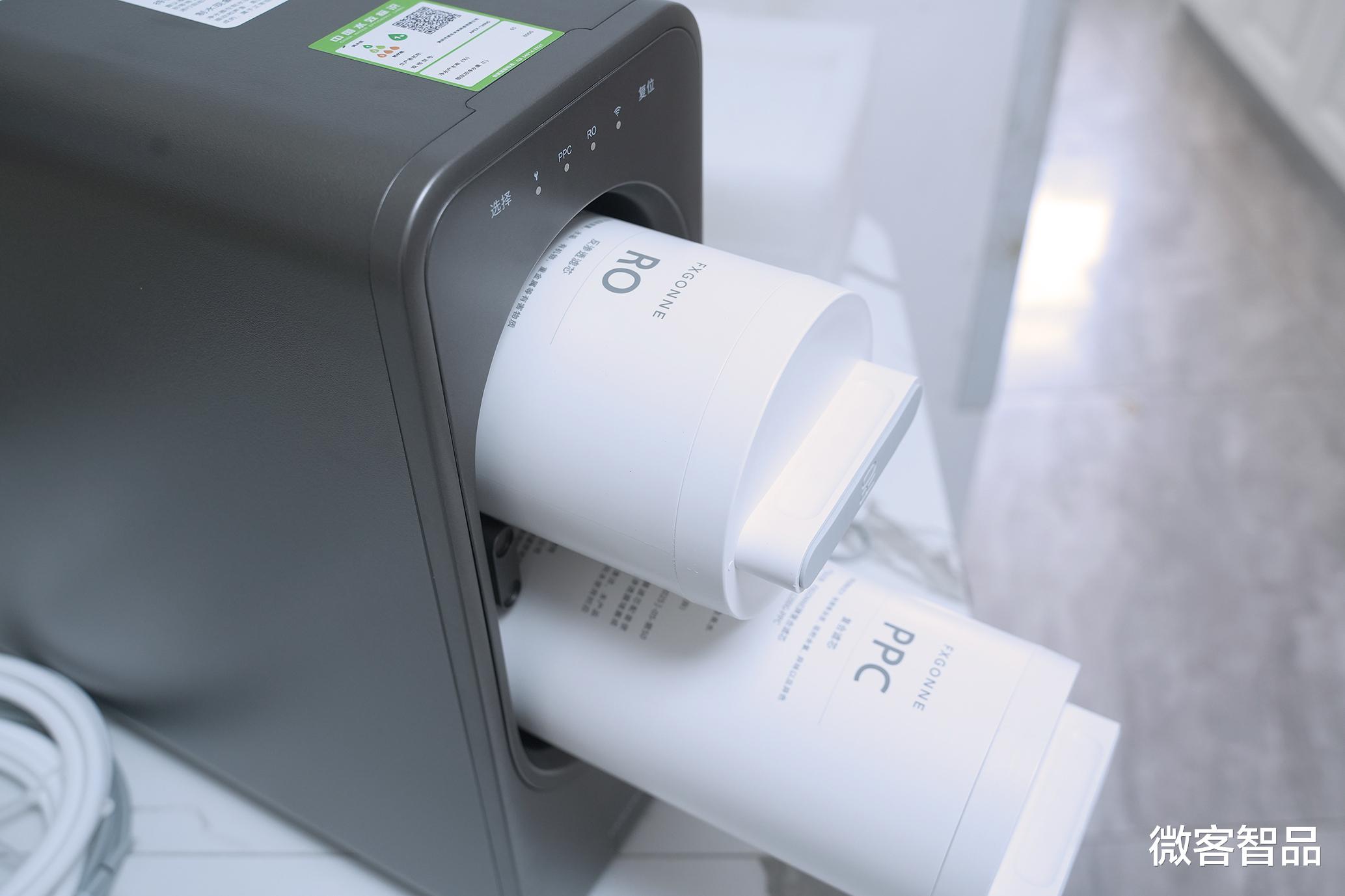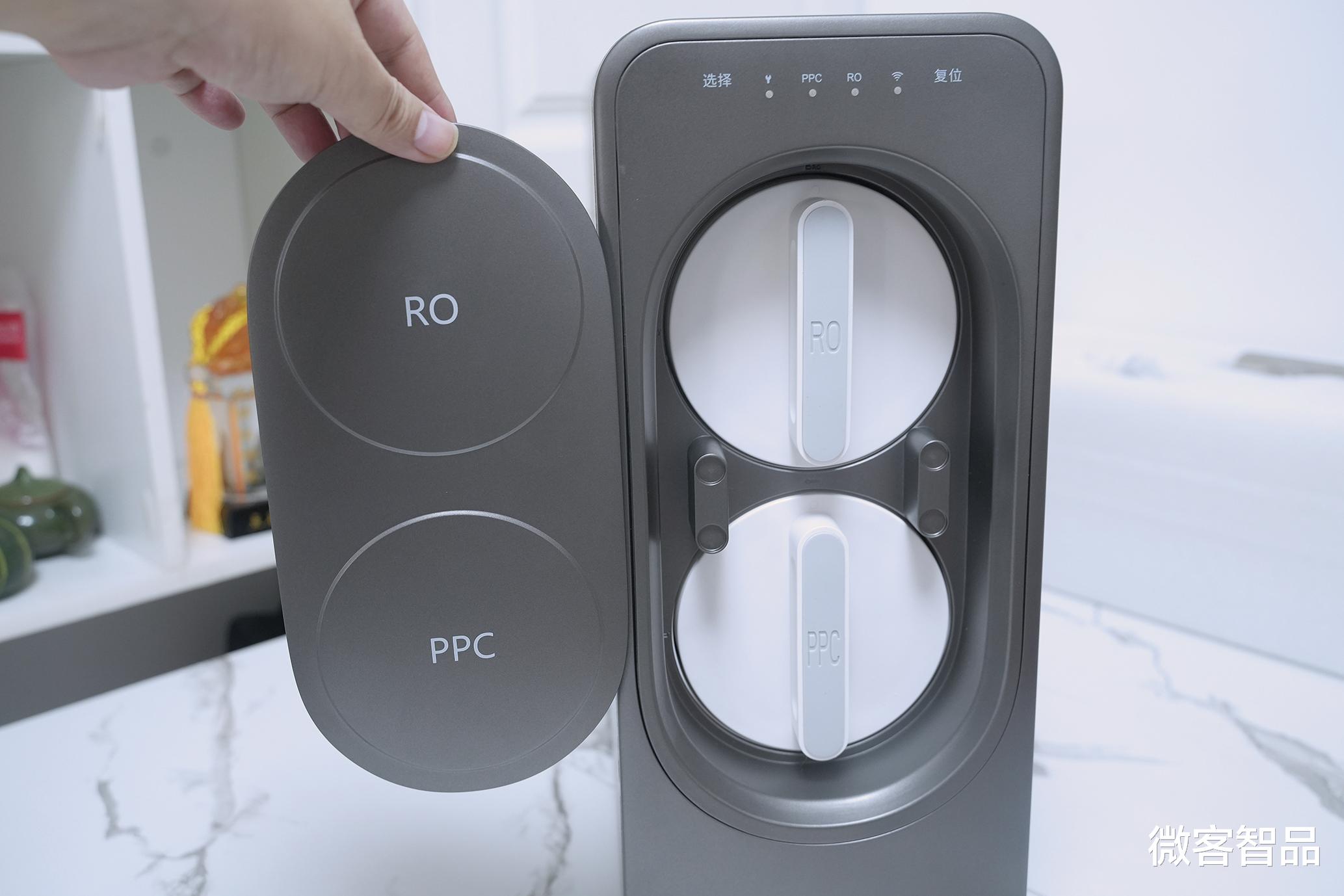 磁吸式面板后的旋钮式双滤芯拆卸和安装都很简单,主机内部还内置了PCB复合滤芯和RO反渗透滤芯各1个。
