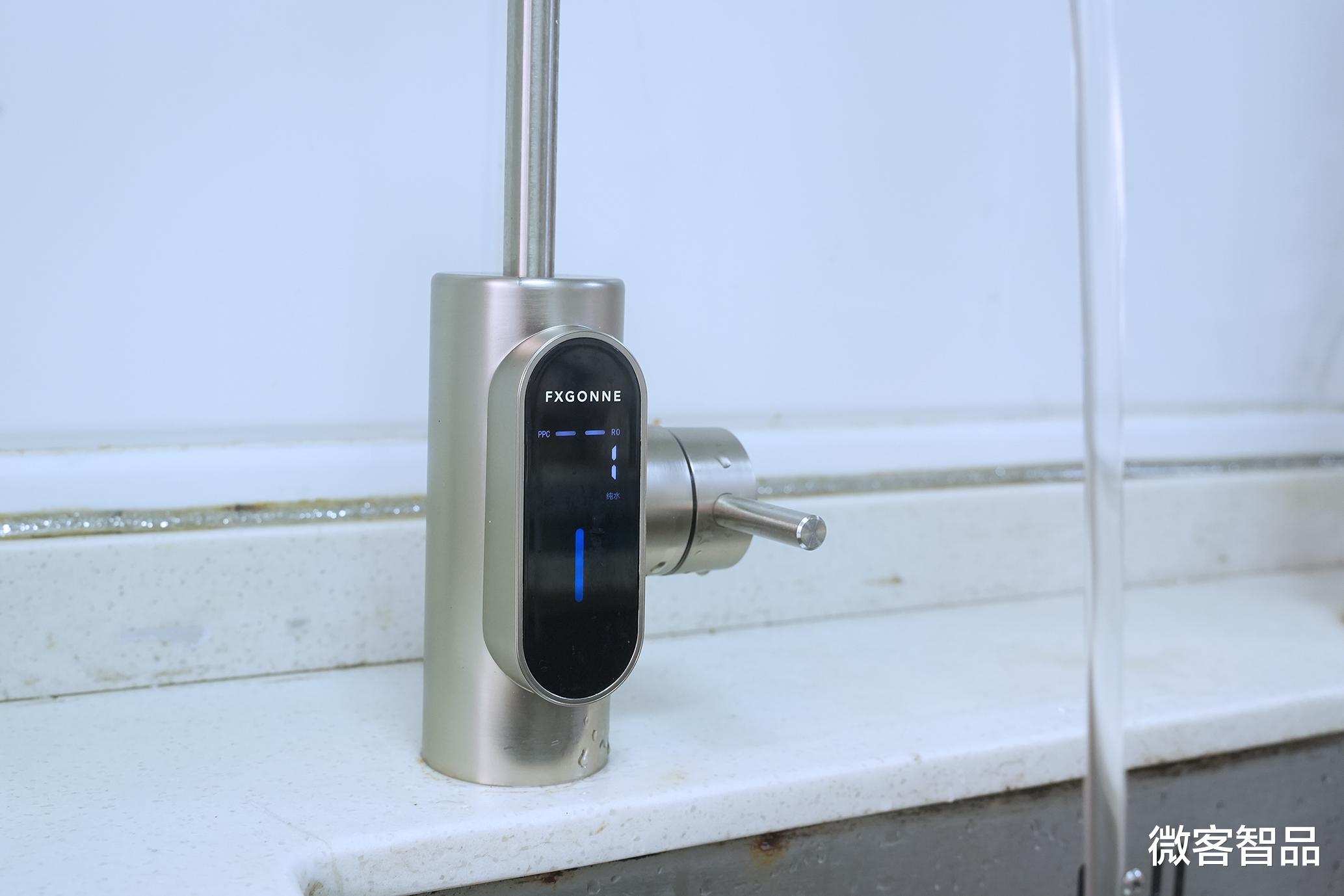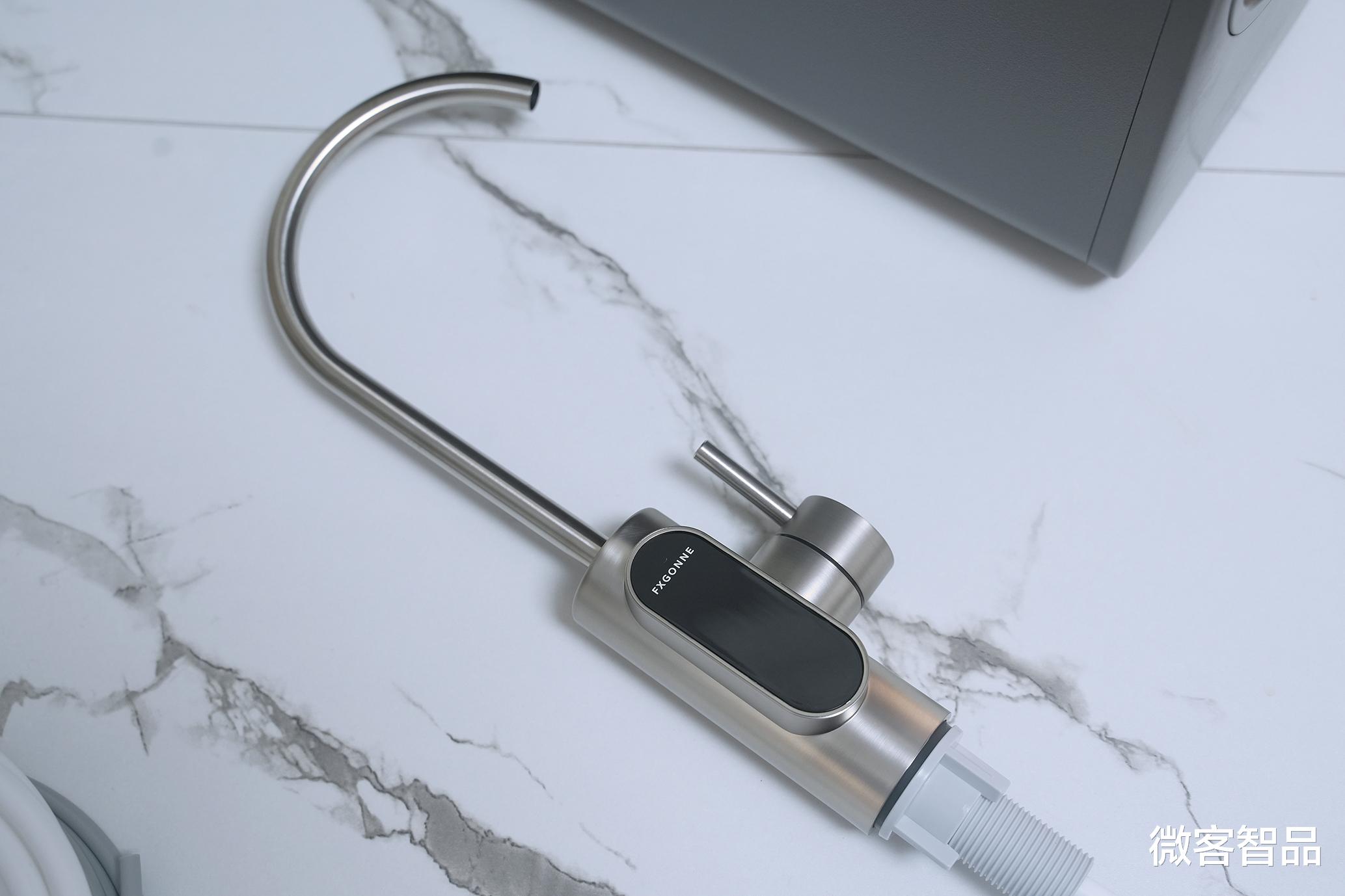 质感出众的水龙头设有2.1英寸智能显示屏,在出水时能实时显示水质TDS值、滤芯剩余寿命等关键数据。