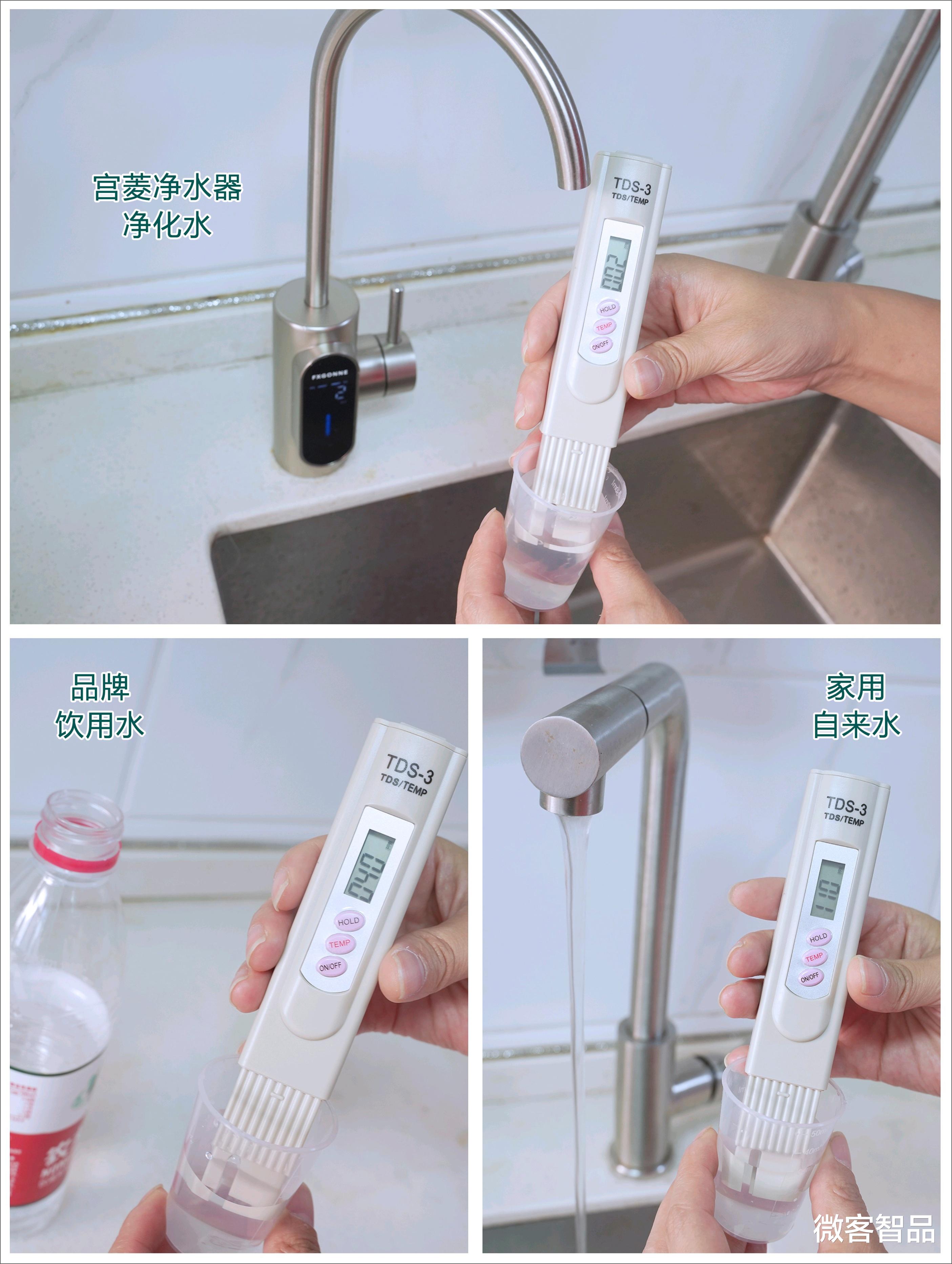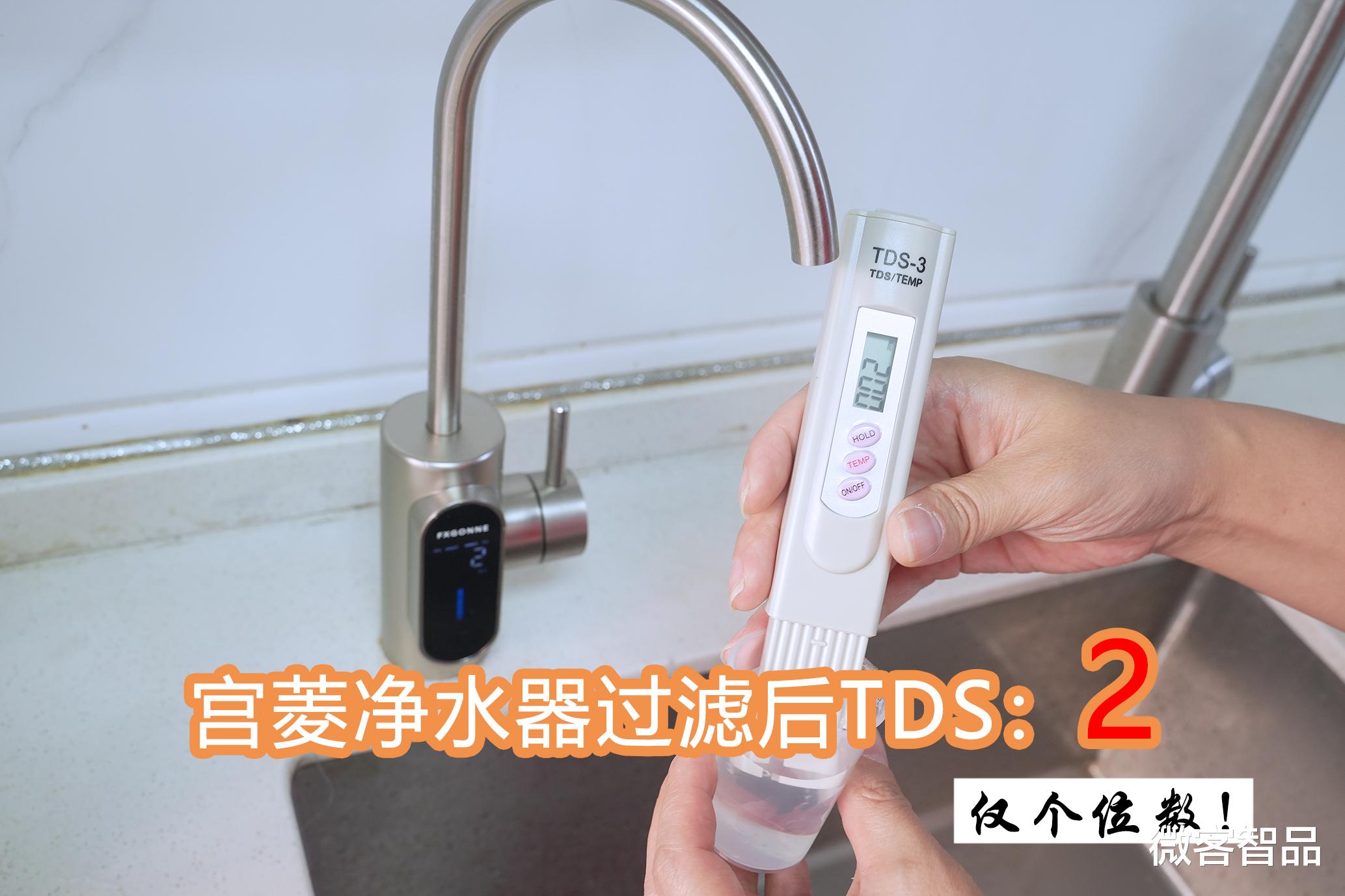 不同于一般家用净水器,宫菱通过死磕安全无毒+复杂深度污染净化,按照5A母婴医护级1:1研发,采用12层母婴级精滤系统,带来了高达0.0001微米的微米净化精度。通过实测,之前使用的自来水TDS值在110左右,某品牌饮用水TDS值在40左右,而经过宫菱净水器净化的水TDS值可以达到2左右。