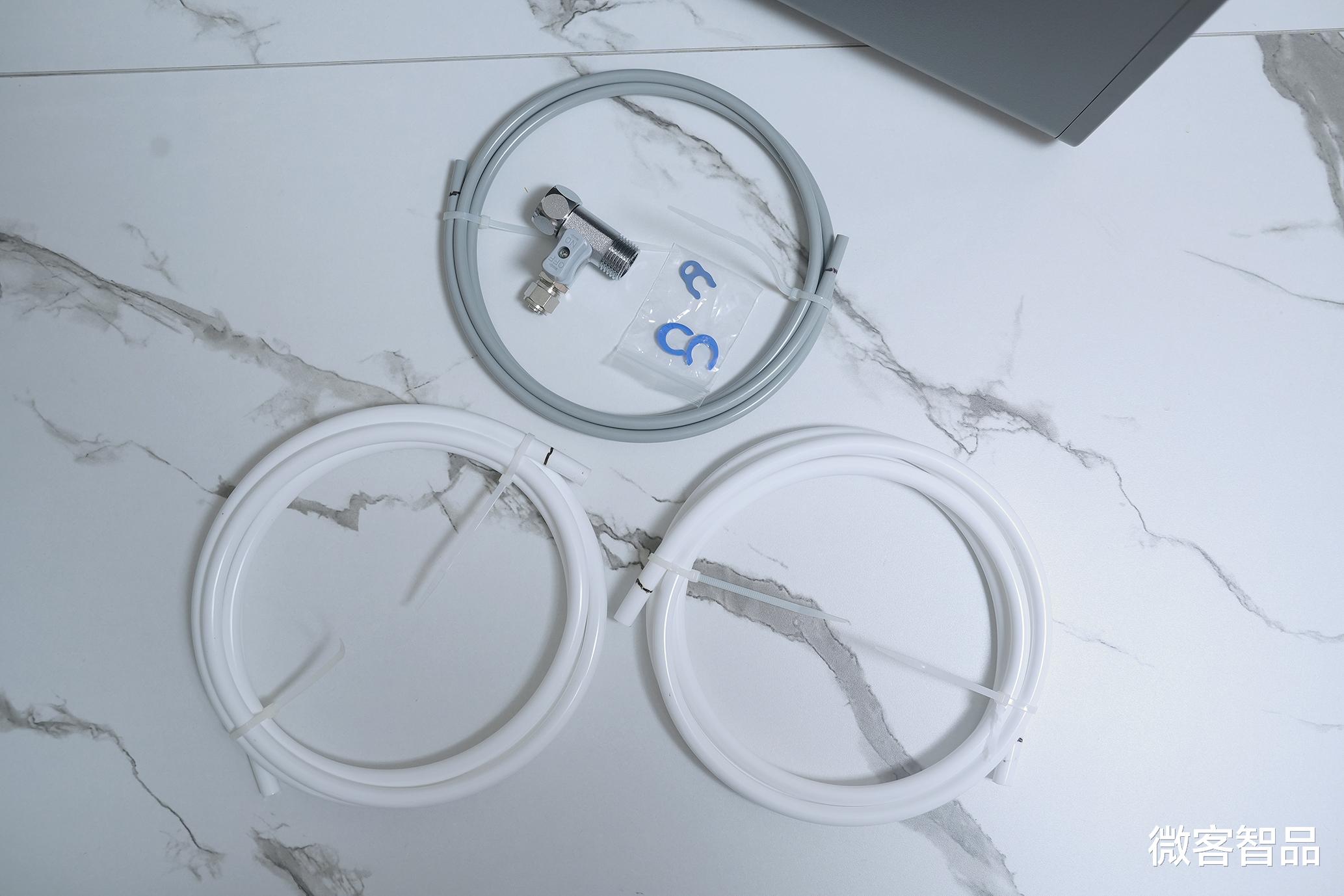 配件方面,除了说明书,还配备了出水龙头、PE管及相关配件。