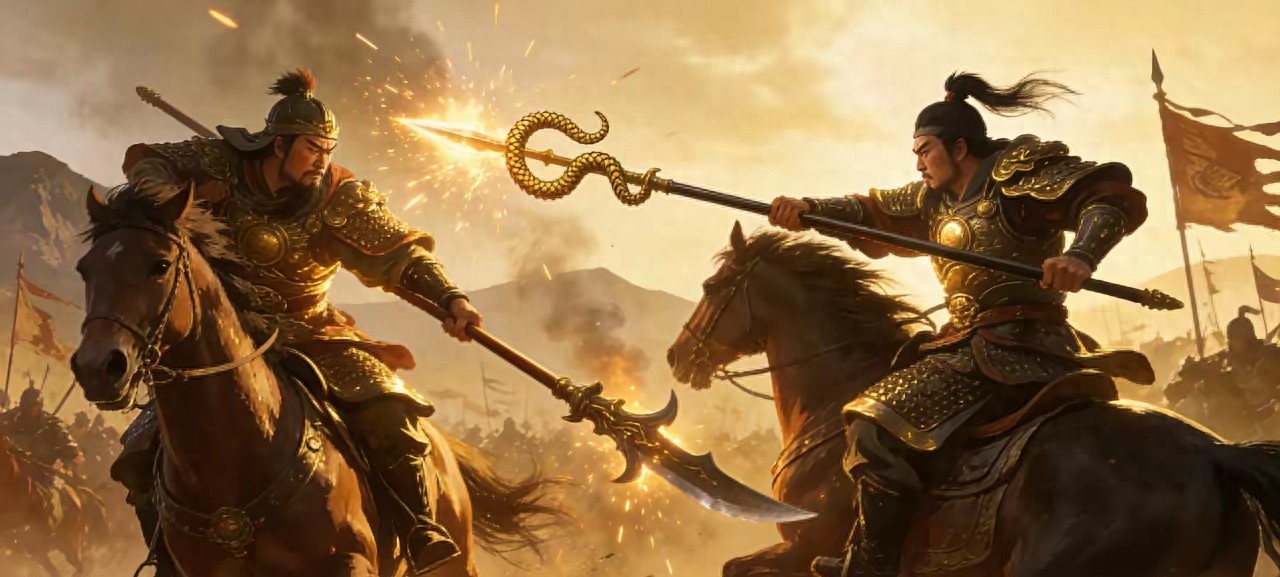 话音未落,史文恭催马挺戟直刺,方天画戟带着凛冽寒风,直取林冲心口,招式狠辣,招招致命。林冲不慌不忙,丈八蛇矛横挡,“铛”的一声脆响,火星四溅,两人各自震得手臂发麻。