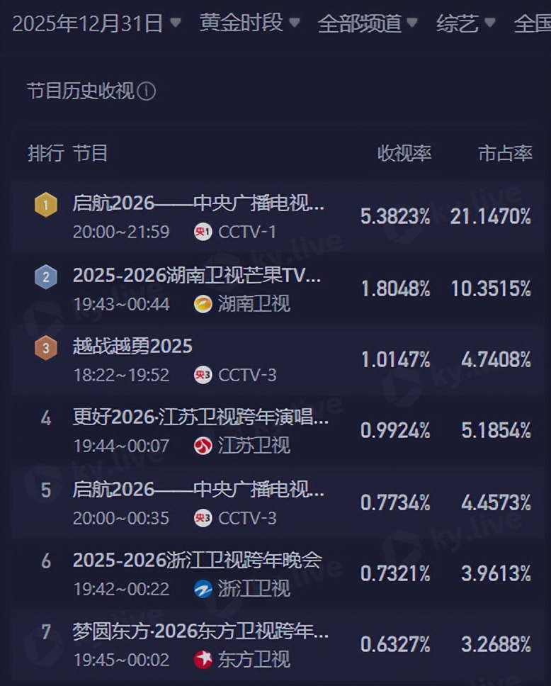这就导致东方台的跨年收视,直接排在了倒数第一。