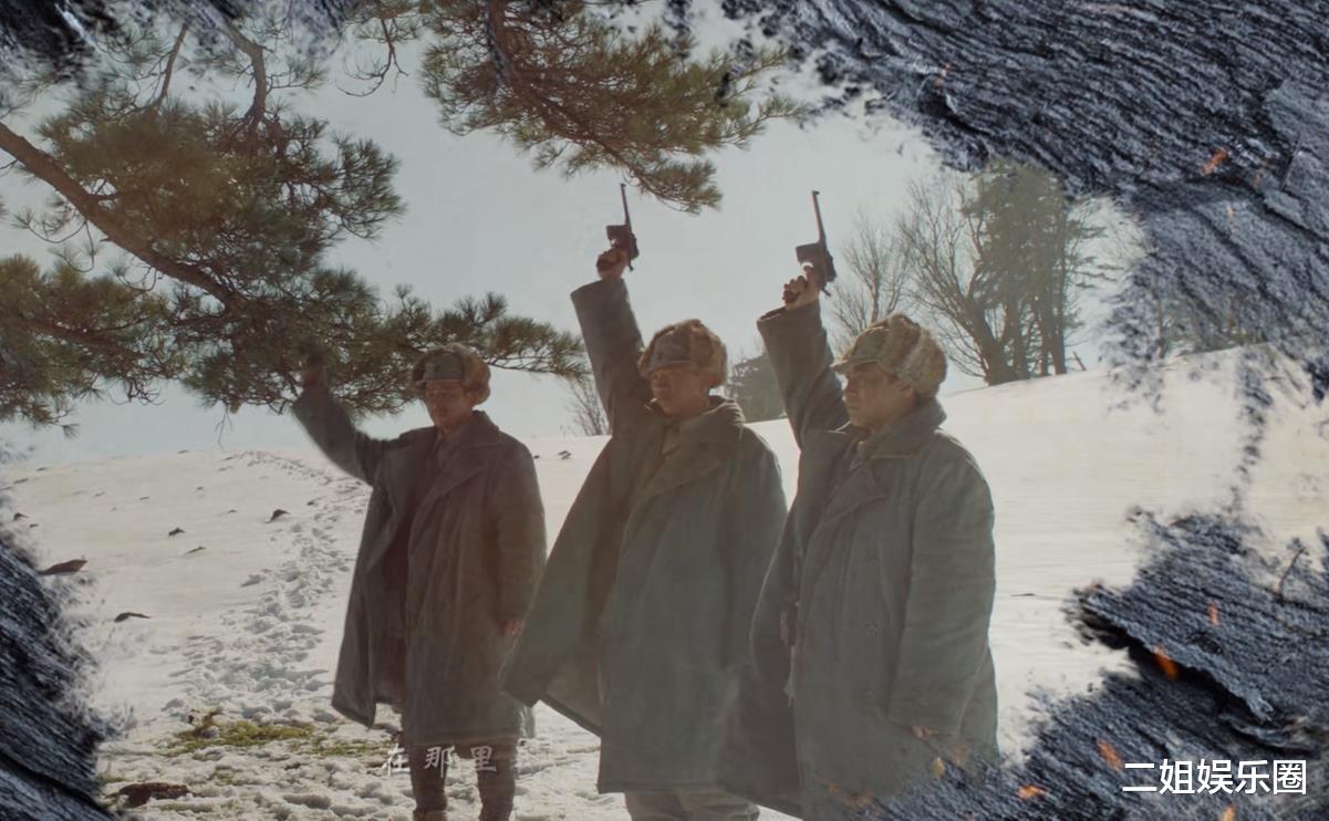 画面中,高云虎、万福庆、小驴子三人来到松林镇的那棵大树下,三个人身穿军服,集体致敬。而画面中,没有汤德远,没有鲁长山,只有这三个人。