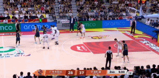 6分28秒徐杰飚进关键三分,4分53秒,徐杰接掩护顶着桑普森、法尔上篮打成,随后麦考尔也飚进关键三分,接下来奎因强杀篮下造法尔犯规2罚打进,并且再上演抢断一条龙劈扣,广东打出一波9-2追到只差2分。