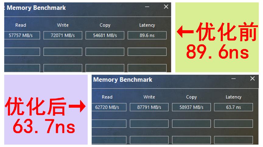 接下来测试游戏,测试的游戏分别为《永劫无间》、《cs2》和《守望先锋》,分辨率为1080P,特效为预设全低,首先测试的时默认/开启Latency Killer的内存延迟表现,默认设置和开启延迟杀手后,内存访问延迟降低了20ns以上。