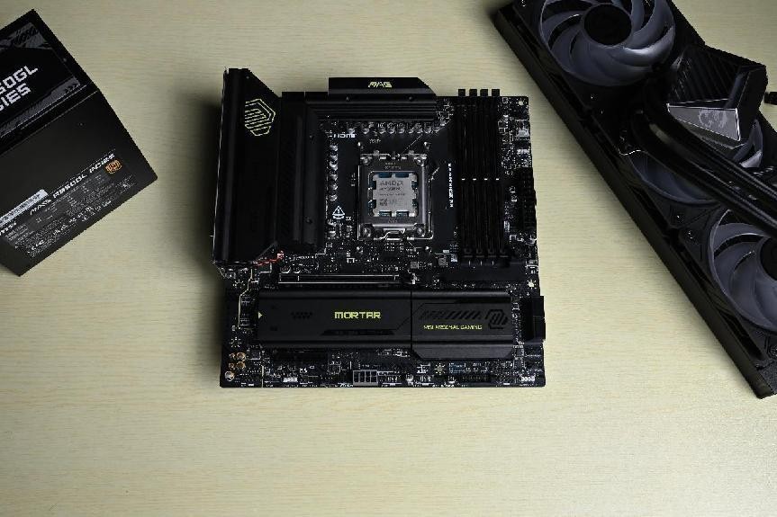 DIY圈子多年来流传着一句话:遇事不决迫击炮。这句话的意思就是迫击炮就像你的本命英雄,当你犹豫不决的时候,选它永远不会错,千元左右的定价+扎实的做工用料+不错的颜值,完美诠释了什么叫性价比。目前各位眼前这款B850迫击炮是AM5主板的新成员,整体为主黑色,迫击炮标志和英文Mortar为黄绿色,体现的是微星该系列主板旺盛的生命力。