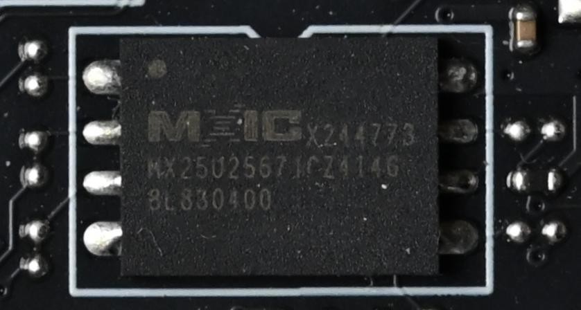BIOS芯片为MXIC x244773,最大容量256MB,为图形化BIOS界面提供了支持;