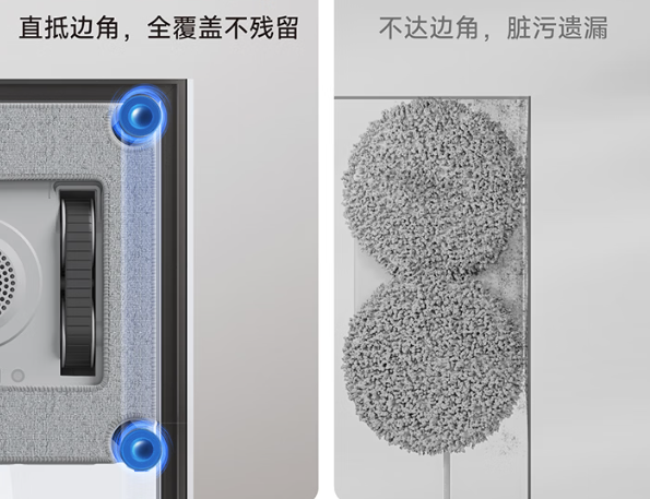 采用锁水无痕技术的高密度纤维抹布,擦拭更干净,拥有四大清洁模式运用AI智感主控芯片,感知周围环境,自动避障清洁,自动规划路径,语音智能播报,实时获取信息,全程语音反馈,从启动到收工配备一键换布,一键收线功能。不过它的智能避障能力较弱,遇到窗框等障碍物时容易卡顿,路径规划的灵活性有待提高,在复杂窗格环境下,可能会出现重复清洁或漏擦的情况。
