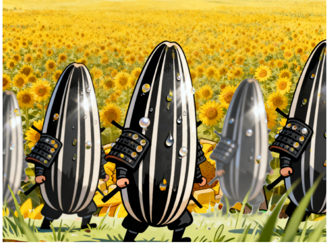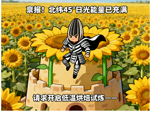 披着黑白条纹战甲的瓜子武士,从向日葵堡垒纵身跃下,“禀报!北纬45°日光能量已充满”,“请求开启低温烘焙试炼——”。