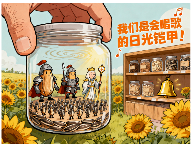 用这样的原野童话,让原味大瓜子在货架敲响太阳钟:“我们是会唱歌的日光铠甲!”