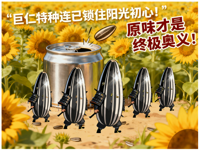 金属罐响起清脆碰撞声,瓜子们立正报数:“巨仁特种连已锁住阳光初心!”,几个特别壮硕的将领,正用宽阔的肩膀比划:「原味才是**奥义」。