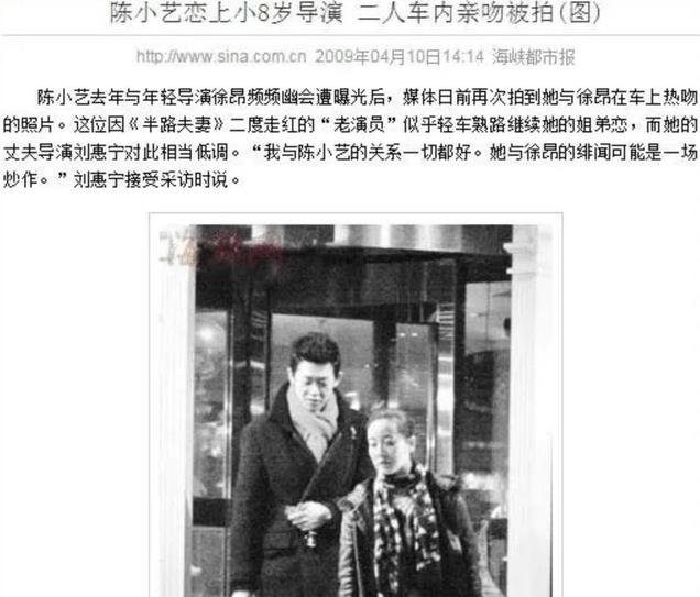 原来陈小艺与一位名叫徐昂的导演在车内“亲吻”举止亲密,被狗仔拍了下来。