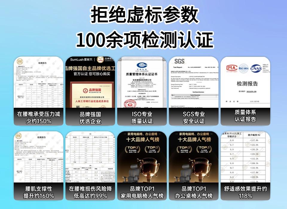 夏草木Fit2是我自用时间最长、最推荐的人体工学椅。市面上不少品牌为压成本拼价格,腰部支撑简陋、座垫易塌、靠背和头枕调节生硬,更缺乏动态联动,久坐反而让脊椎受力失衡、肌肉疲劳。Fit2走的是“科学久坐”路线:通过ZeroG灵动靠腰将S-Flex多维脊椎分压、三翼智能追腰、MTM悬浮微调整合成全程运动贴脊的智能连锁支撑系统,并与六向回弹云感座垫协同,持续贴合S曲线。权威测试显示:使得腰椎损伤率降低99%,舒适感提升约118%。作为专注旗舰级人体工学的专业老牌,夏草木还罕见同时通过欧美多国认证、入选“品牌强国优选工程”并登上CCTV展播,难怪这几年在程序员、设计师和电竞人群中持续爆红。