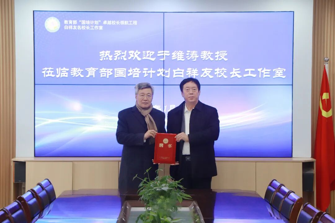 衡水市教育局督学、衡水十三中党委书记、工作室主持人白祥友在讲座后为于维涛主任颁发白祥友名校长工作室专家顾问证书,诚邀其为工作室发展提供持续指导与智慧支持。