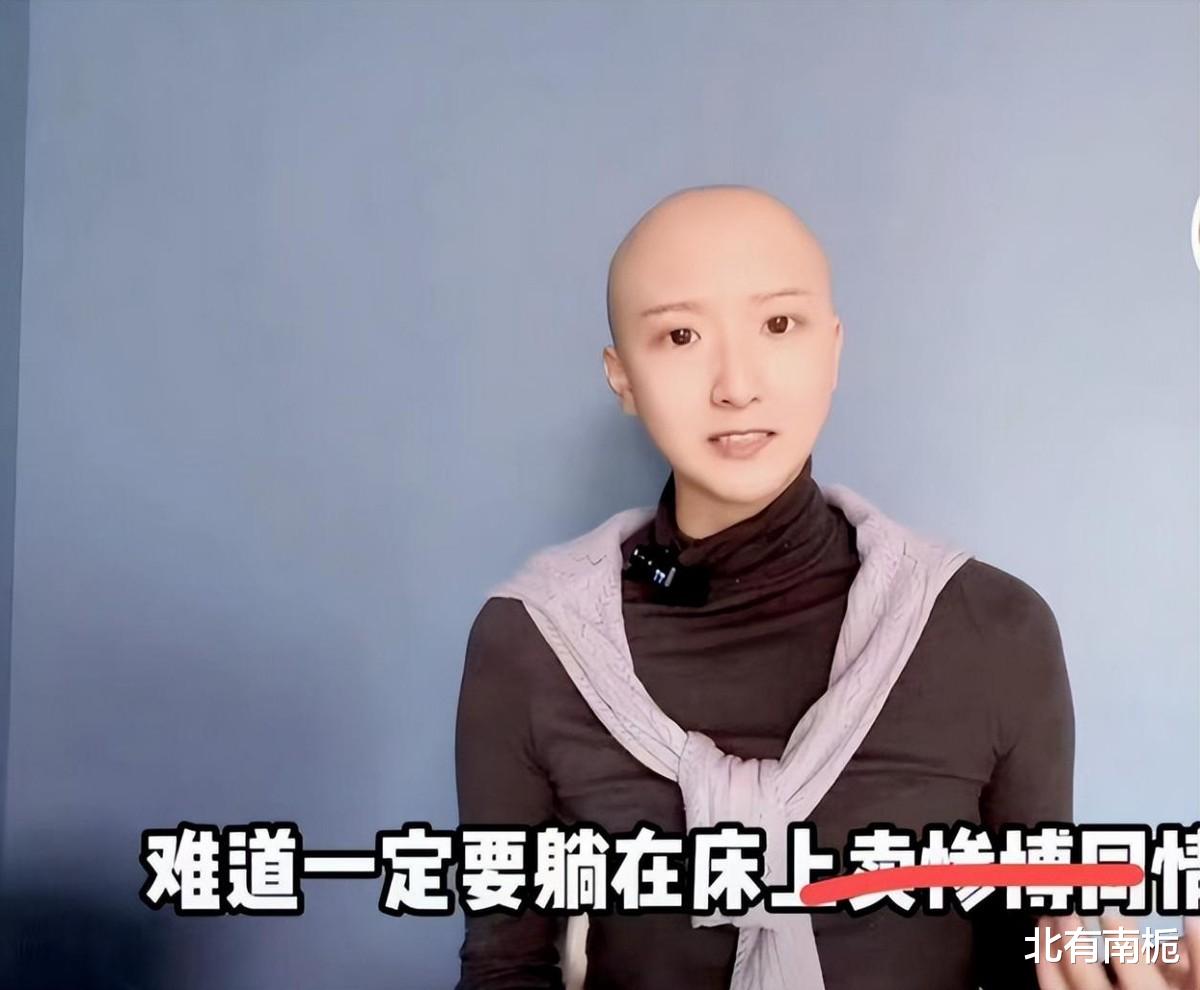 在拍视频的时候,她有时戴着假发和网友互动,有时直接暴露出自己的光头。她对于自己的病,渐渐有了治愈的信心,因为善良乐观的她坚信,奇迹总会在下一站等她。