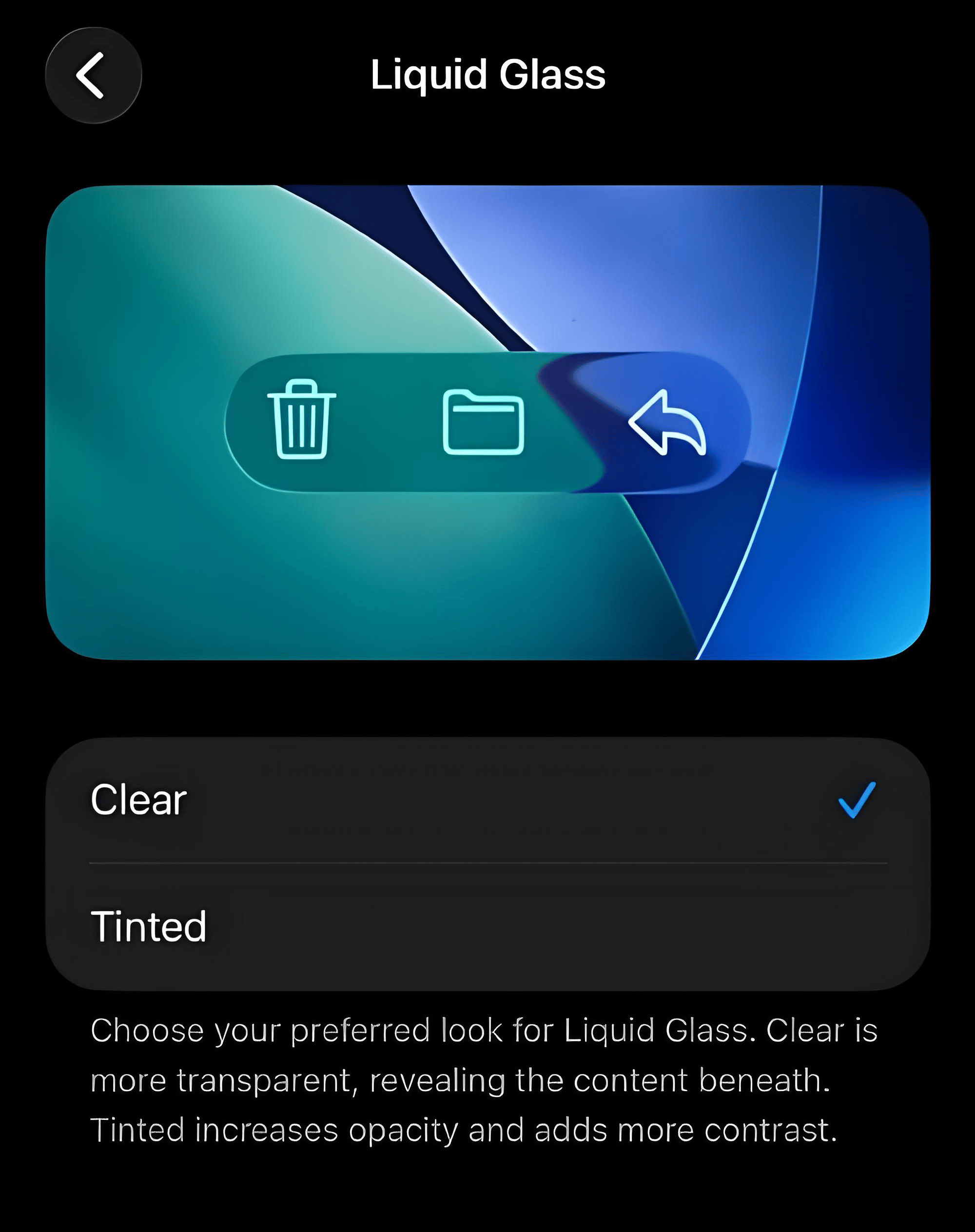首先是Liquid Glass(液态玻璃)透明度调节功能。