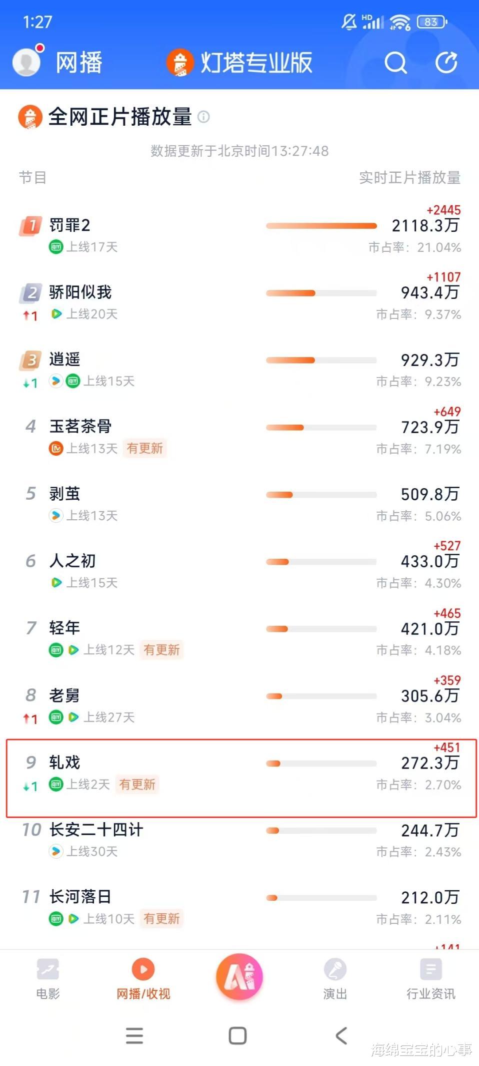 开播一天后,这部剧的热度表现平平。