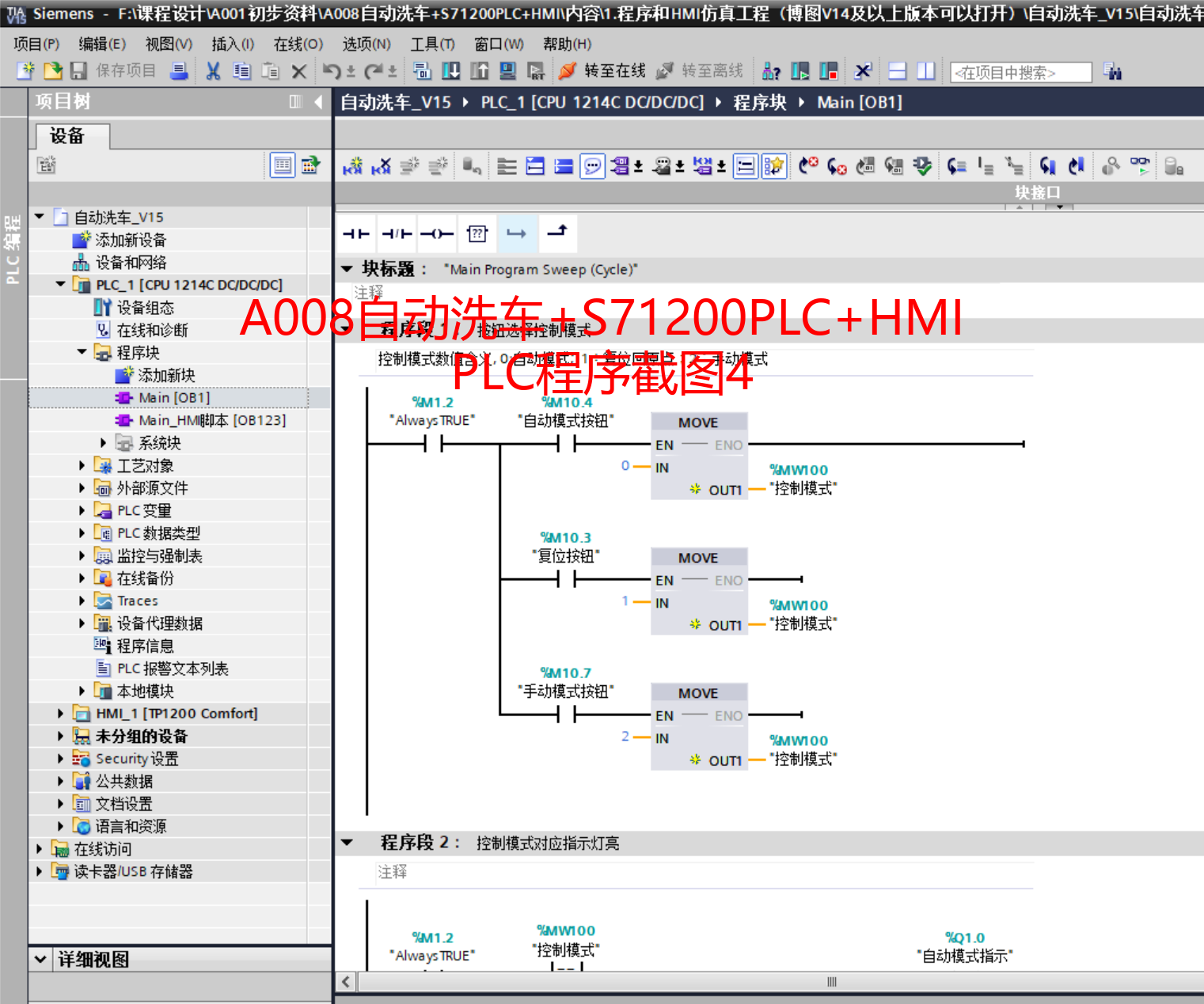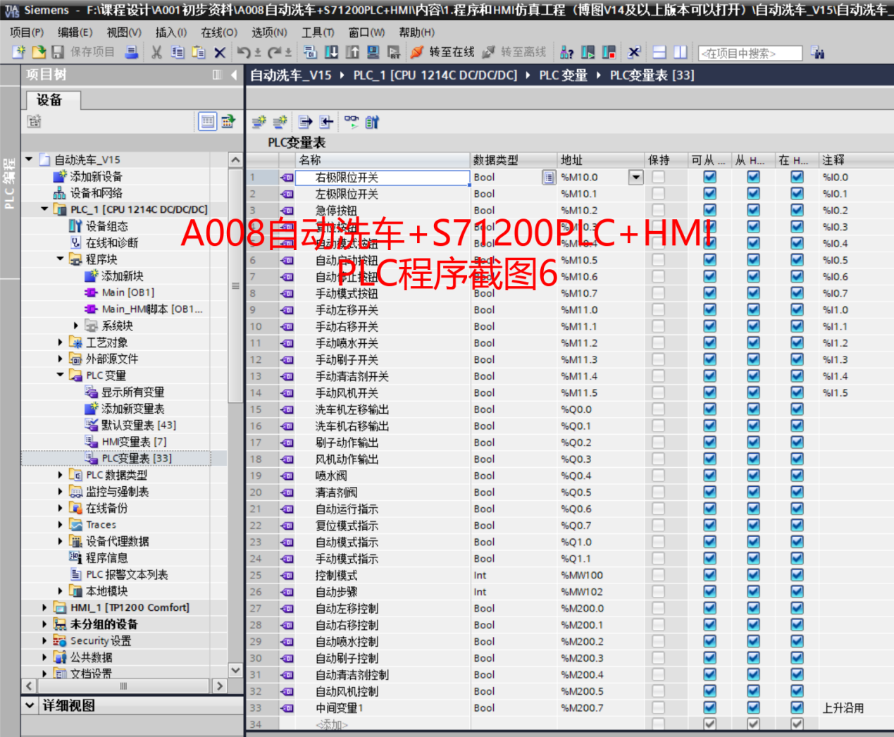 【毕业设计】A008基于博途西门子1200PLC自动洗车控制系统