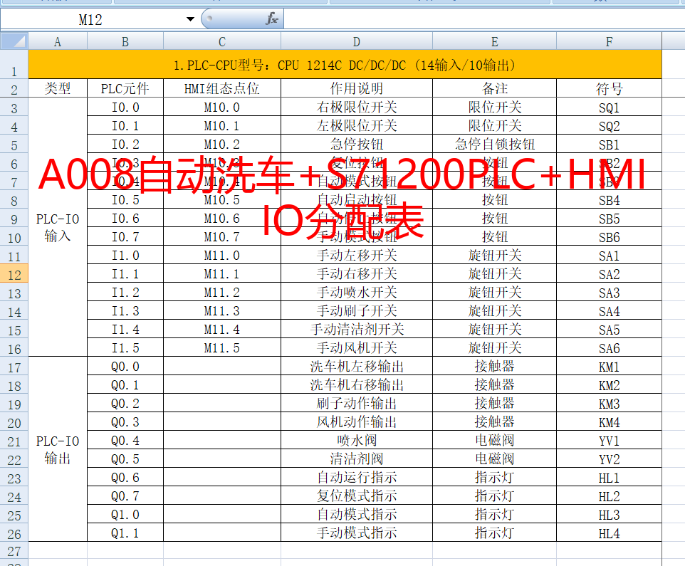 (含详细的输入/输出地址、元件名称、符号、作用说明、关联变量)
